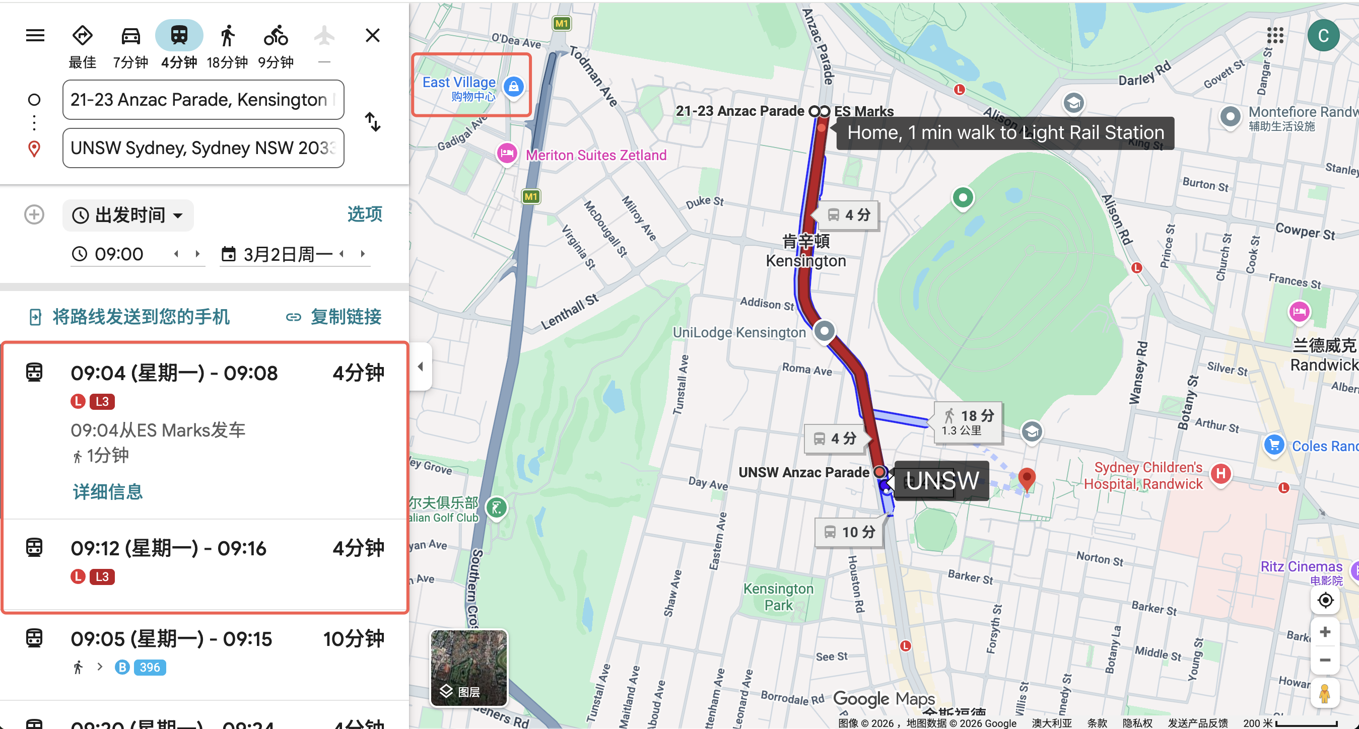 距离UNSW主校区轻轨两站 4 min