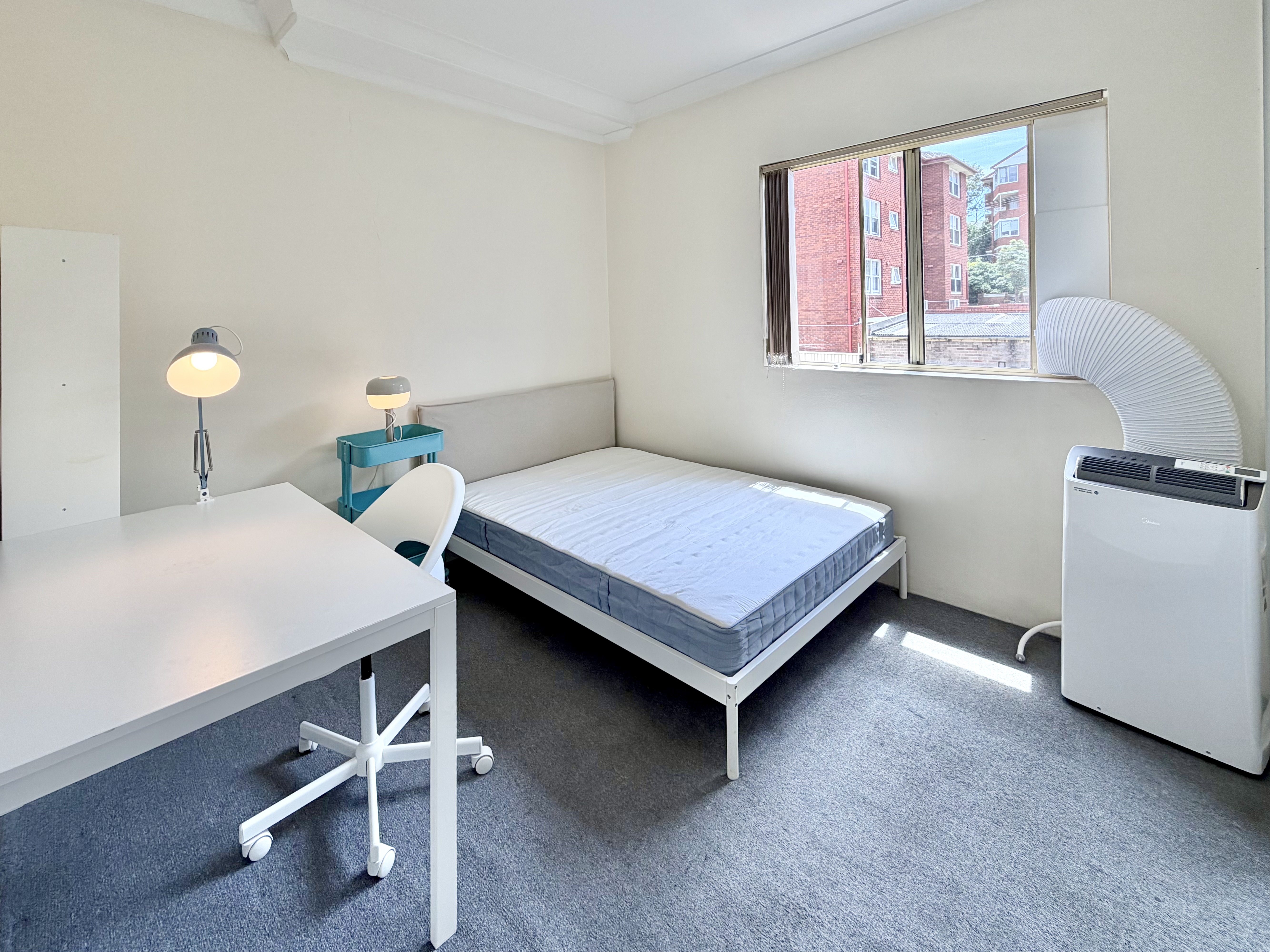 -室内:家具,冰箱洗衣机于2026年初新购置,2个卧室均配备冷暖移动空调,窗户均有纱窗。安全有保障:公寓楼使用Security Key(此类钥匙全澳配钥匙店都不给配,法规私配违法,只能向公寓申请)才能进入,每个卧室都可反锁,保证舍友间隐私。房间分布和大小请参考图片最后一张户型图。