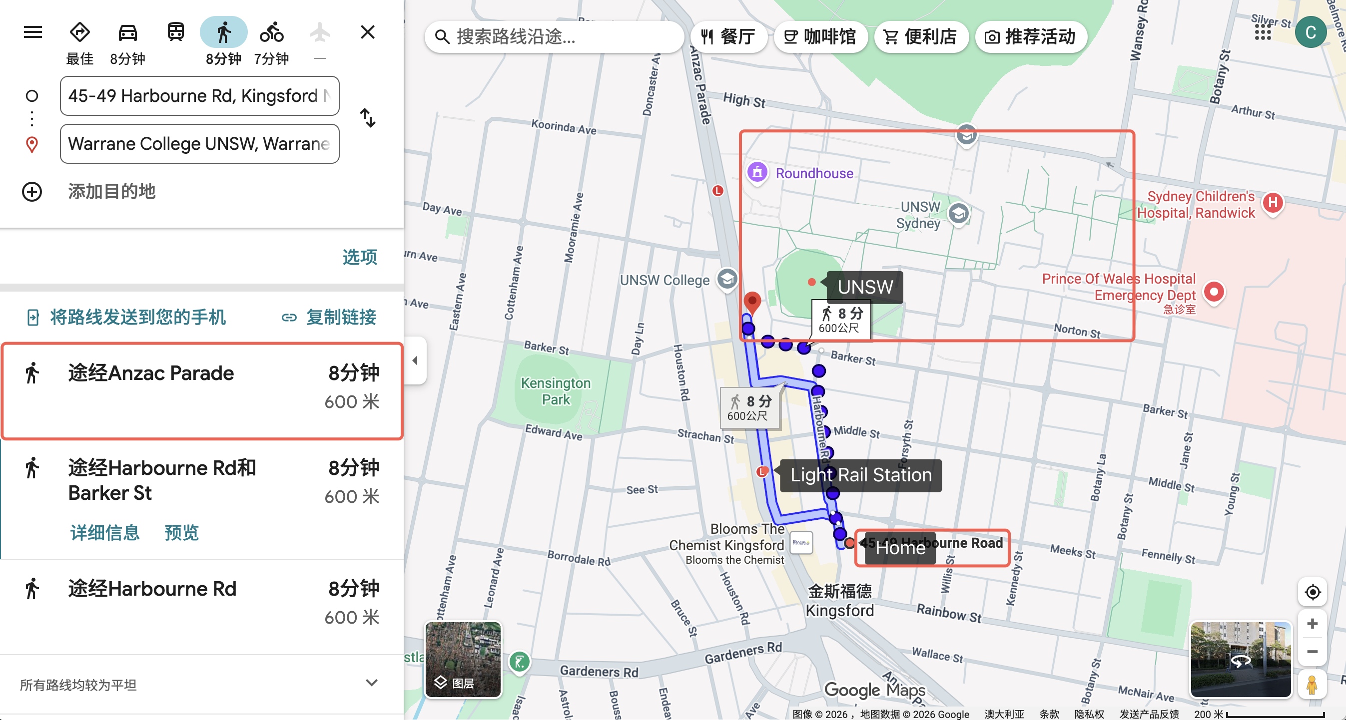 距离UNSW主校区步行8 min,附近有多家餐馆和亚超。